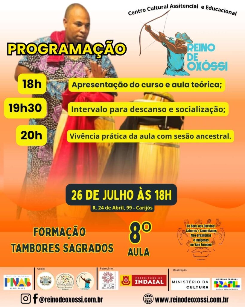 * 18h – Abertura sagrada + Aula teórica: “Da Boca aos Ouvidos: Sabores e Sonoridades Alto-Brasileiras e Indígenas no Vale Europeu”